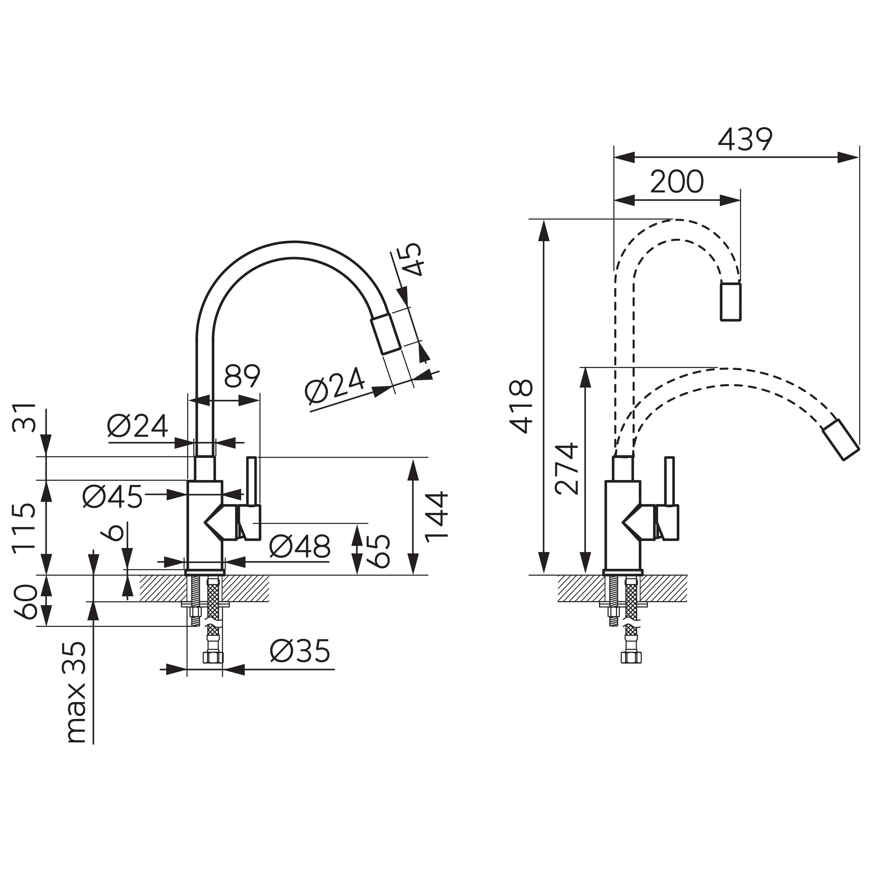 Ferro Zumba Gun Metal mosogató csaptelep, flexibilis kifolyócsővel, fegyverszürke színben