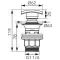 Ferro Click-clack mosdóleeresztő túlfolyós mosdókhoz, szögletes dugóval, fekete