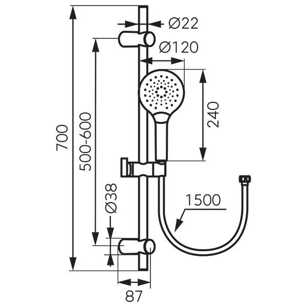 - zuhanyrúd hossza: 70 cm